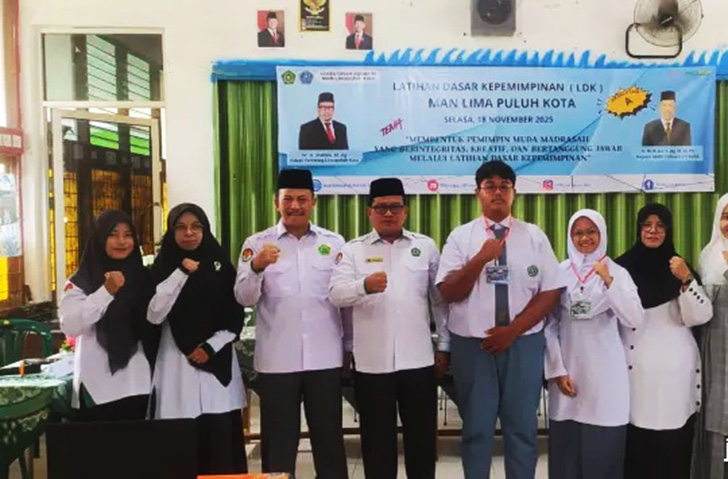 LIMA PULUH KOTA – MAN Lima Puluh Kota resmi menggelar Latihan Dasar Kepemimpinan (LDK) sebagai upaya menyiapkan calon pemimpin masa depan. Kegiatan yang berlangsung Selasa (18/11/2025) itu dibuka langsung oleh Kepala Kantor Kemenag Lima Puluh Kota, Dr. H. Irwan, M.Ag.